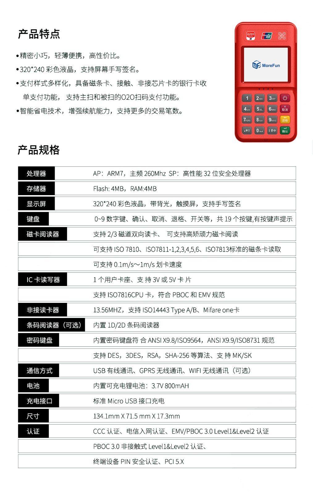 首页>>河南产品中心>>河南手持无线POS 河南联动优势-优POS Pro 高配版 * 性能优越:32位高性能ARM11安全CPU;整机通过业内更先进的PCI PED4.X 安全认证及国内受理终端PIN输入设备安全评估检测认证,多项措施保障金融交易的安全;* 时尚外观:外形小巧携带方便,高抗跌落性能、宽工作温度、防水防尘设计、外壳坚固耐刮、户外携带式作业更加耐久可靠。* 通讯备份:支持2G-3G扩展;* 超长续航:3.7V-800毫安稳定续航能力,智能电池管理保证持续工作18小时,待机72小时。 标准配置 返 回